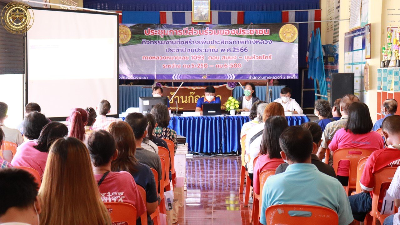 แขวงทางหลวงพะเยา ร่วมกับ สำนักก่อสร้างที่ 1 กรมทางหลวง กระทรวงคมนาคม จัดการประชุมการมีส่วนร่วมของประชาชน การปรับปรุงรูปแบบการก่อสร้าง โครงการก่อสร้างทางหลวงหมายเลข 1202 ตอนพะเยา - สันต้นแหน ระหว่าง กม.8+500 - กม.37+782