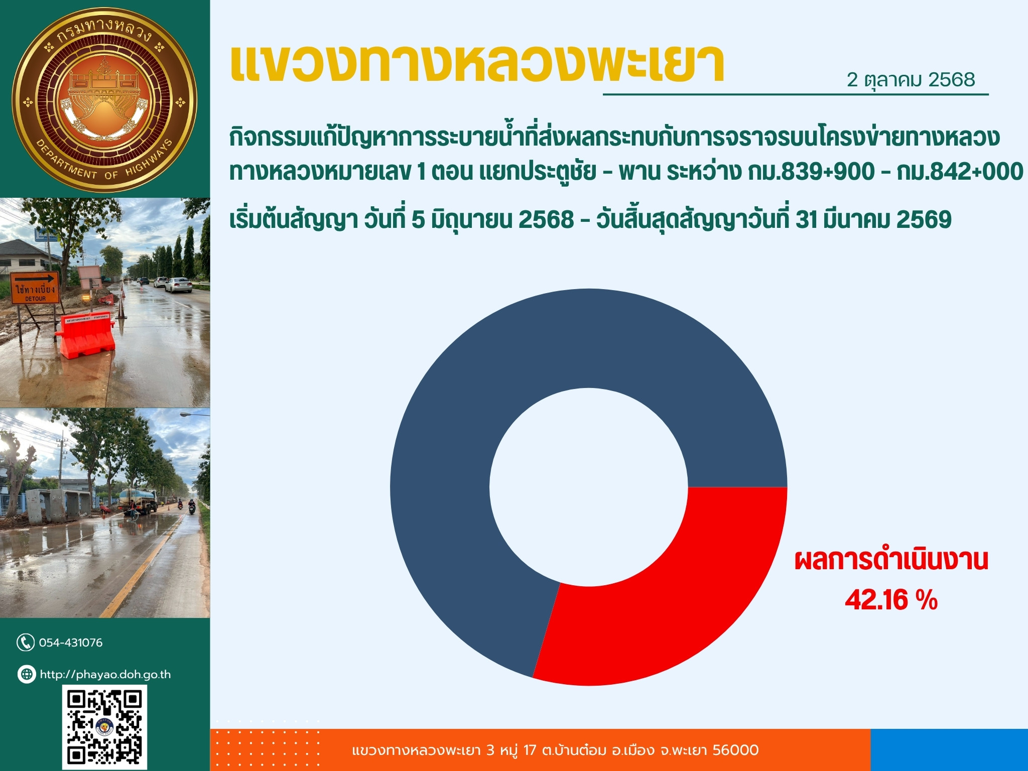 ข่าวประชาสัมพันธ์จากกรมทางหลวง โดยแขวงทางหลวงพะเยา