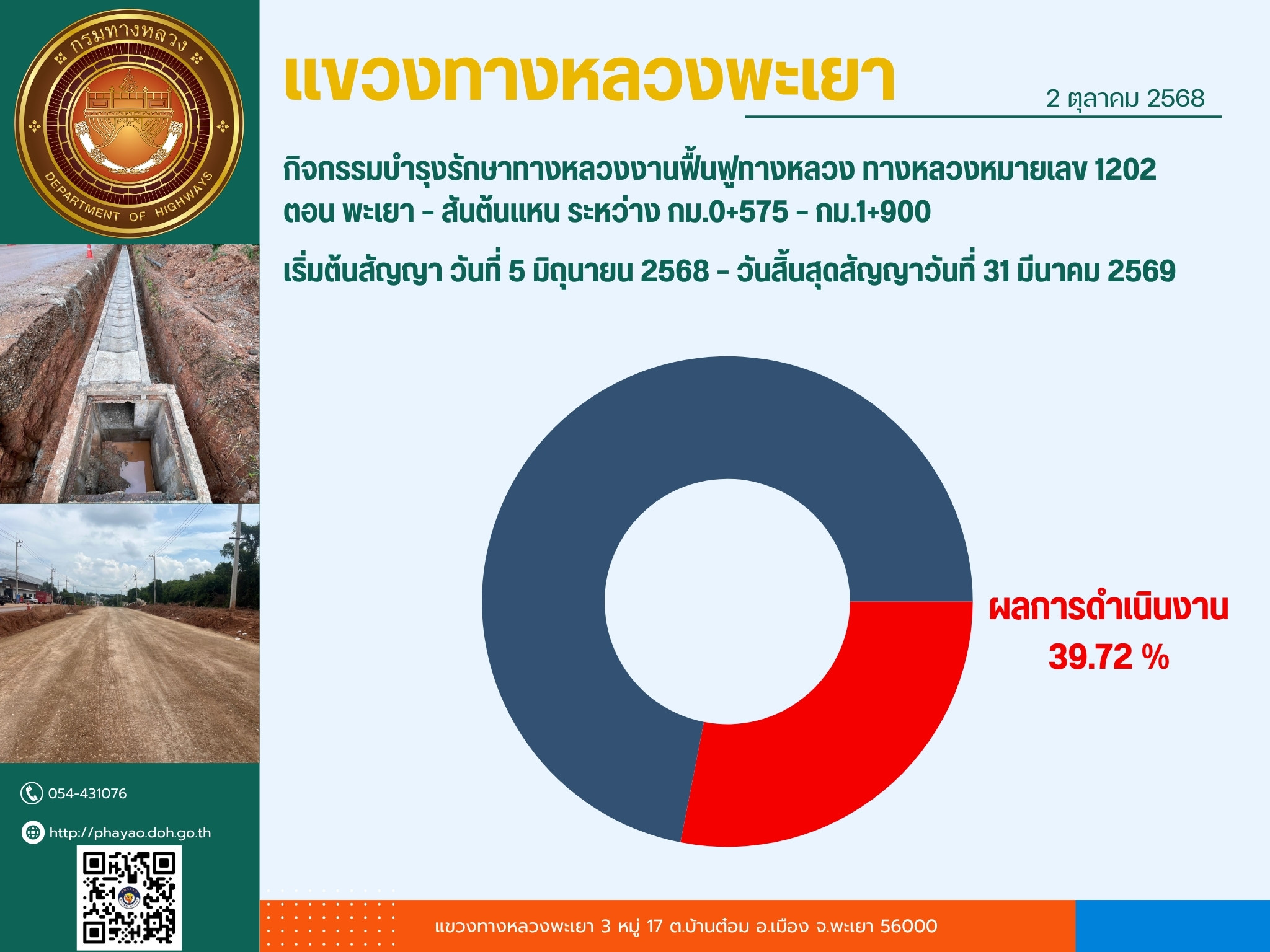 โครงการก่อสร้างแขวงทางหลวงพะเยา กรมทางหลวง กระทรวงคมนาคม