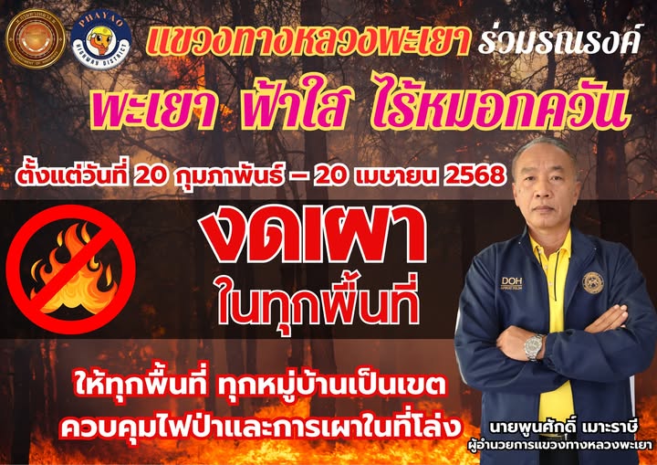 แขวงทางหลวงพะเยา ร่วม รณรงค์ ร่วมกัน งดการเผา ในทุกพื้นที่ ให้ทุกพื้นที่ ทุกหมู่บ้านเป็น เขตควบคุมไฟป่า และการเผาในที่โล่งตั้งแต่วันที่ 20 กุมภาพันธ์ – 20 เมษายน 2568