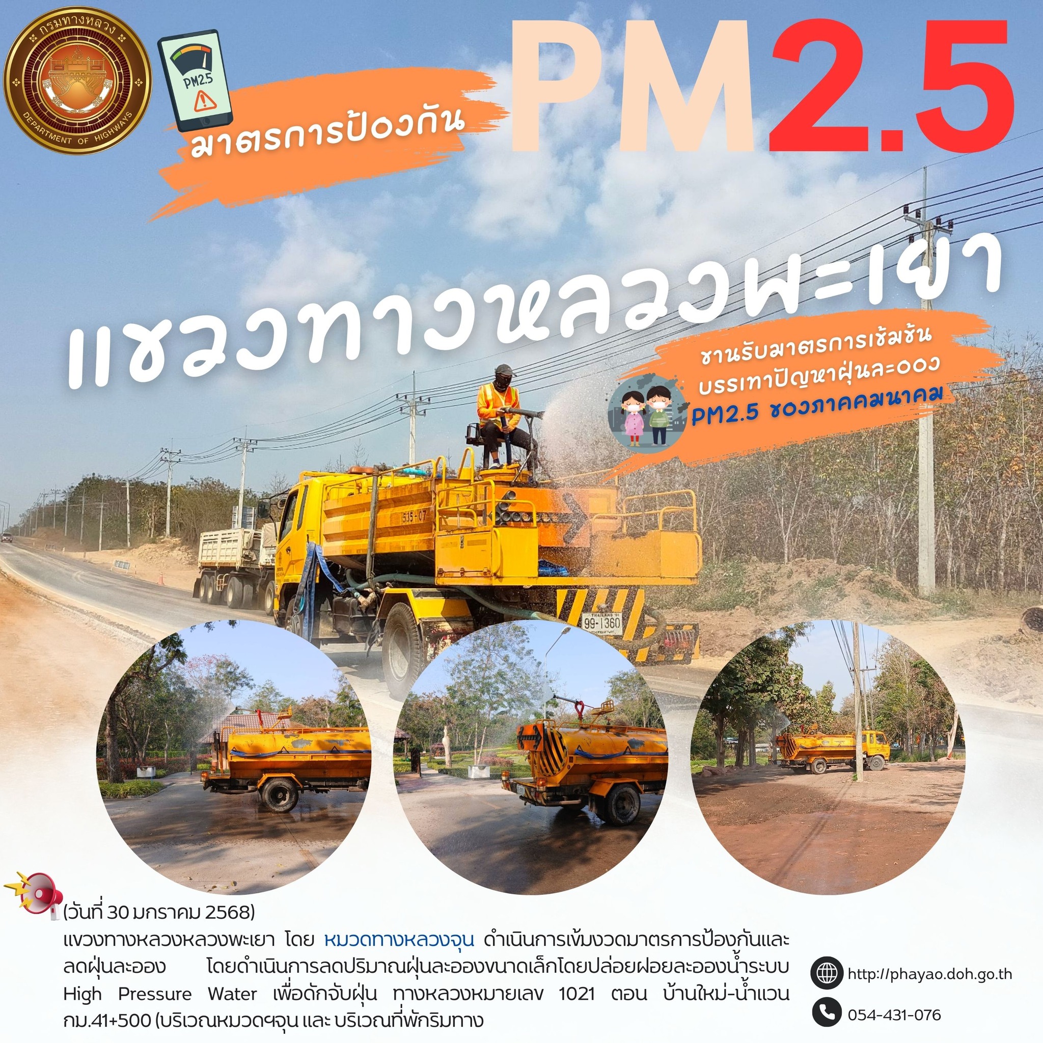 นายพูนศักดิ์ เมาะราษี ผู้อำนวยการแขวงทางหลวงพะเยา ขานรับมาตรการเข้มข้นบรรเทาปัญหาฝุ่นละออง PM2.5 ของภาคคมนาคม ตามมาตรการลดปัญหาฝุ่นละอองขนาดเล็ก PM2.5