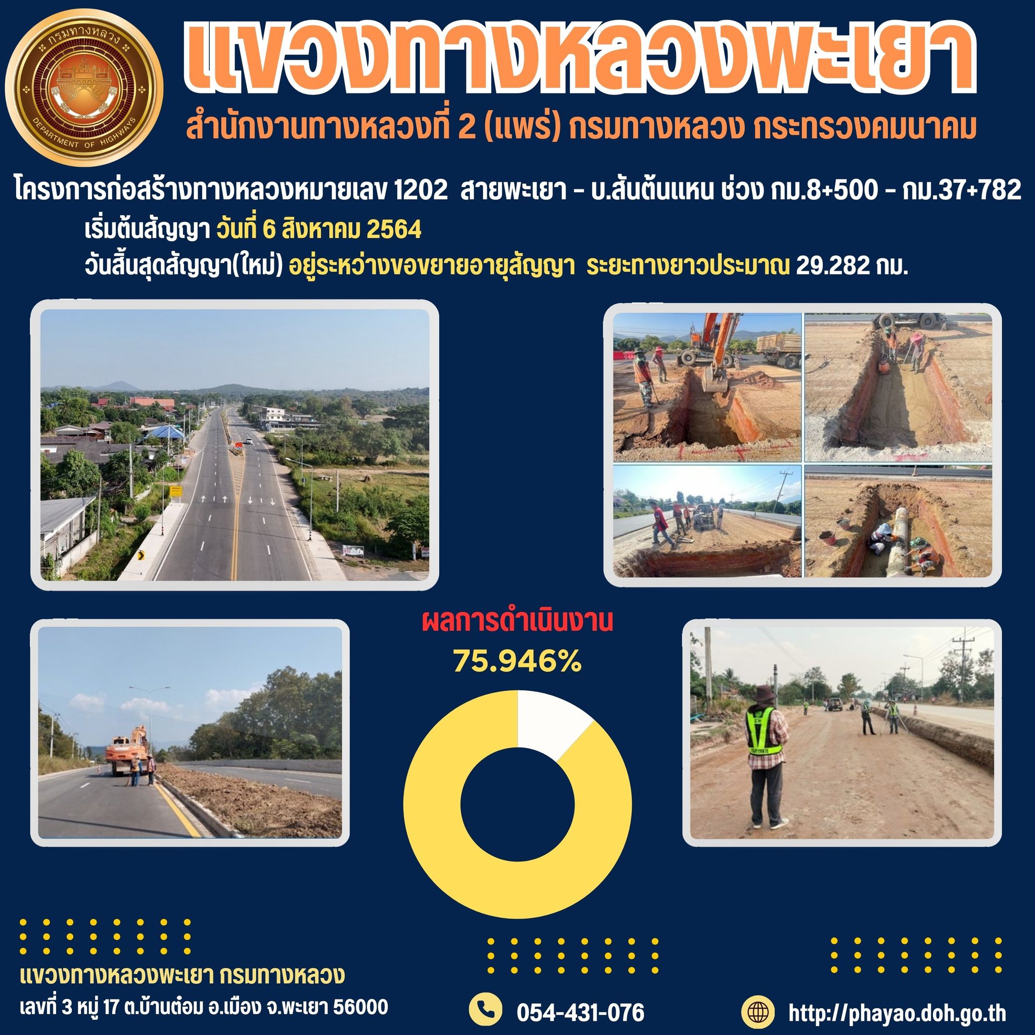 ความคืบหน้า เดือนกุมภาพันธ์ 2568 โครงการก่อสร้างทางหลวงหมายเลข 1202 สาย สายพะเยา – บ.สันต้นแหน ช่วง กม.8+500 – กม.37+782