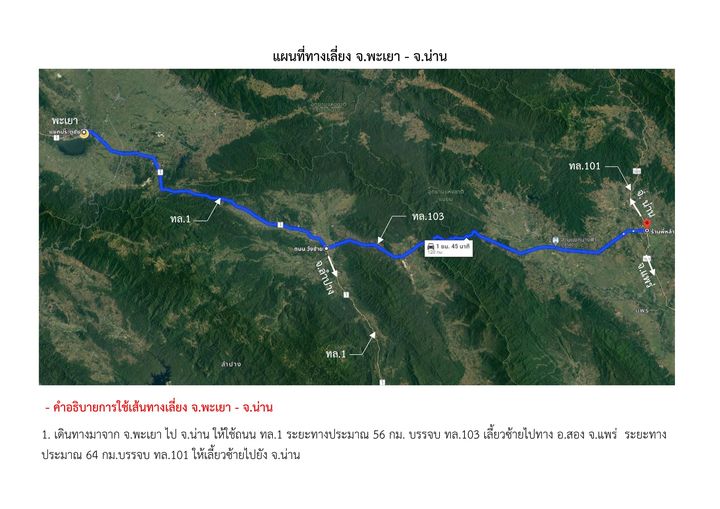 ประชาสัมพันธ์เส้นทางการจราจร แผนที่ทางเลี่ยง จ.พะเยา - จ.น่าน