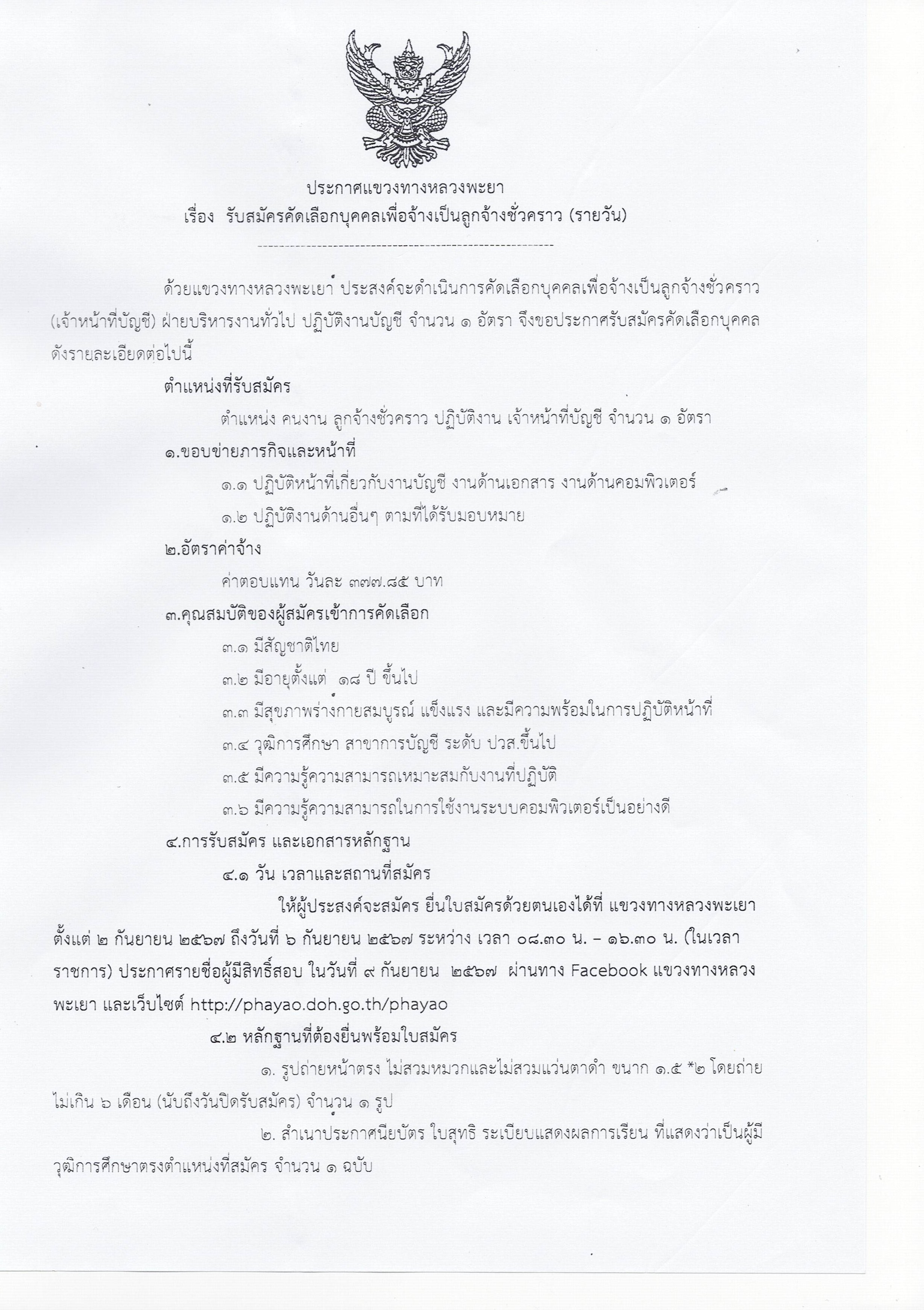 | แขวงทางหลวงพะเยา ประสงค์จะดำเนินการคัดเลือกบุคคลเพื่อจ้างเป็นลูกจ้างชั่วคราว (เจ้าหน้าที่บัญชี) หน้า2 | 144 | ดาวน์โหลด |