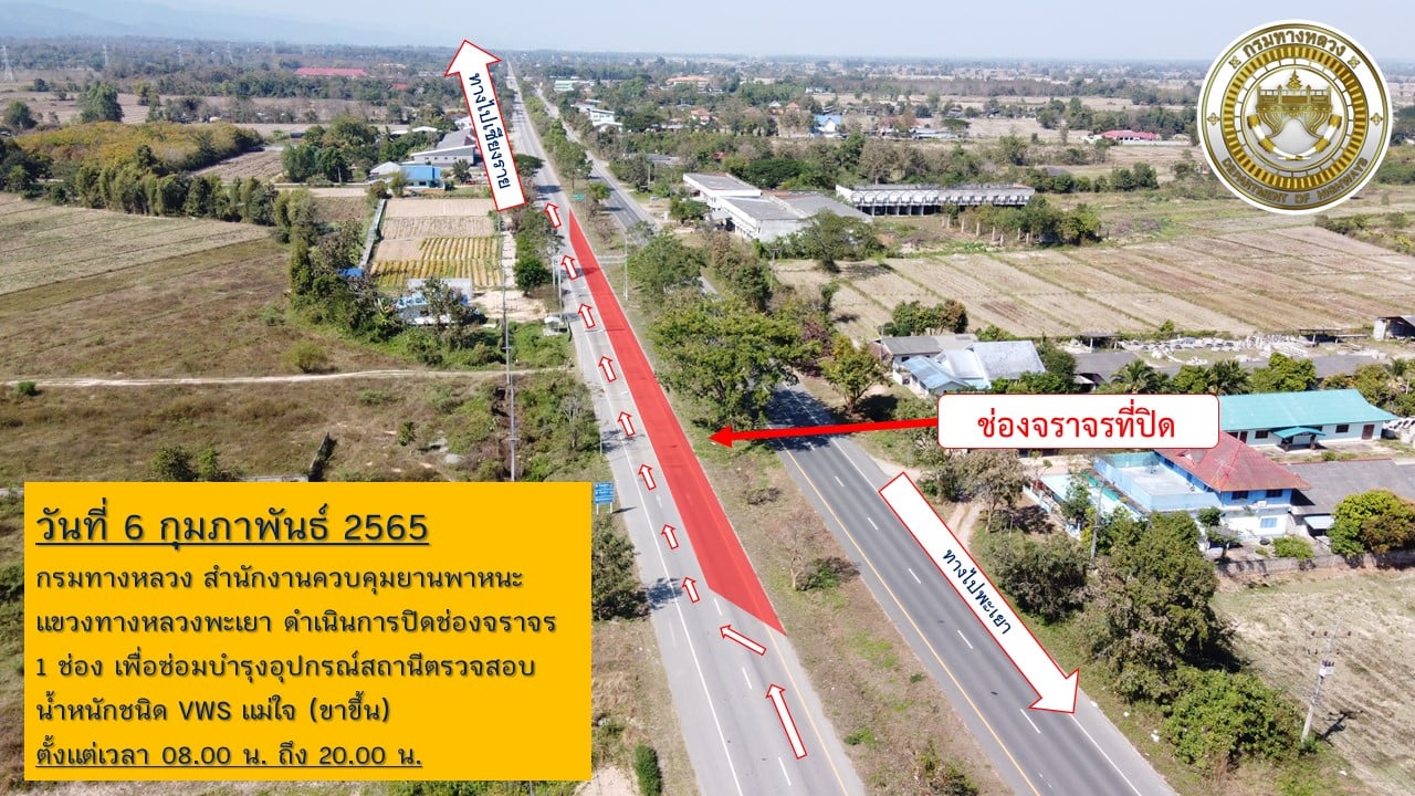 วันที่ 6 กุมภาพันธ์ 2565 ปิดการจรจร จำนวน 1 ช่องจราจร ตั้งแต่เวลา 08.00 น. - 20.00 น. เพื่อตรวจสอบและเช็คสภาพการทำงานของระบบ