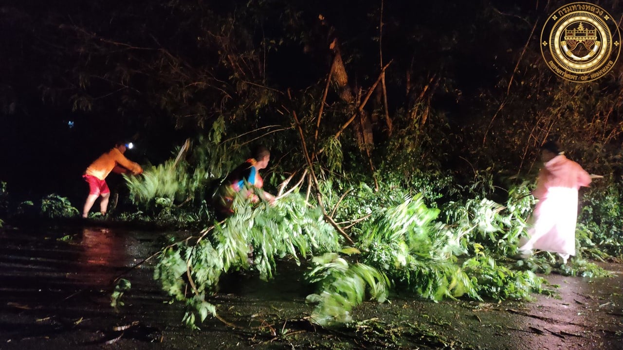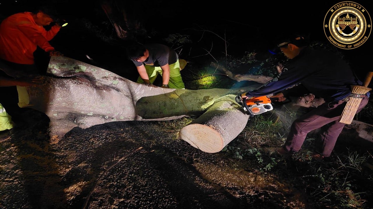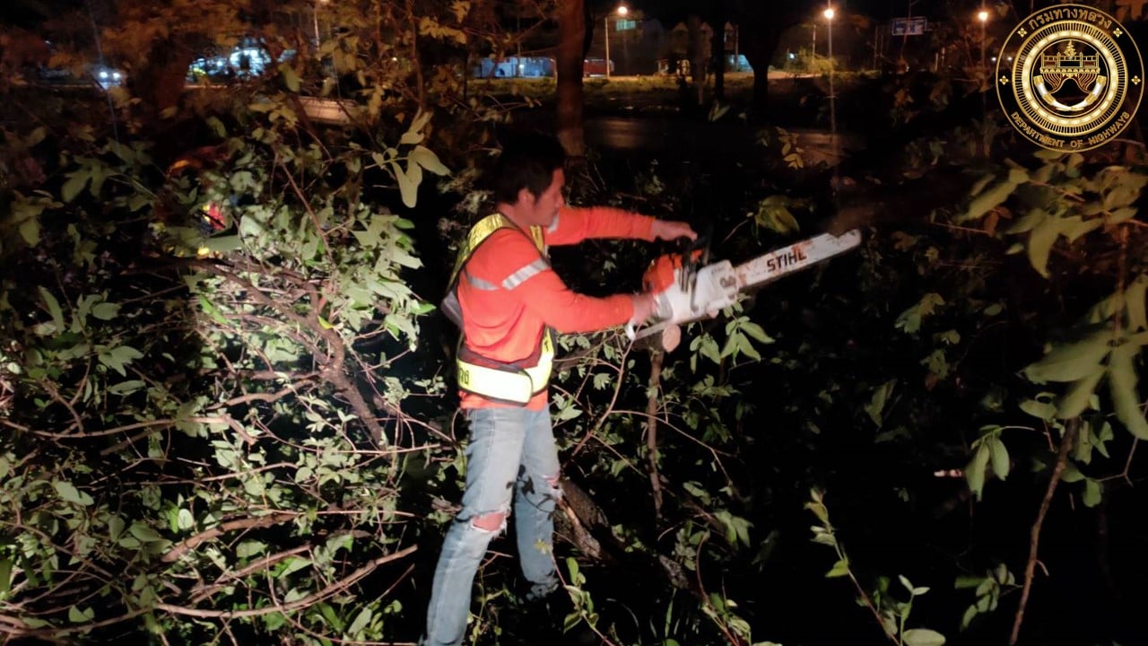 ดำเนินงานเปิดทางจราจร เนื่องจากเกิดเหตุฝนตกหนัก ลมกระโชกรุนแรง ทำให้ต้นไม้ล้มทับผิวทางจราจร ในวันที่ 17 มีนาคม 2565 ที่ผ่านมา