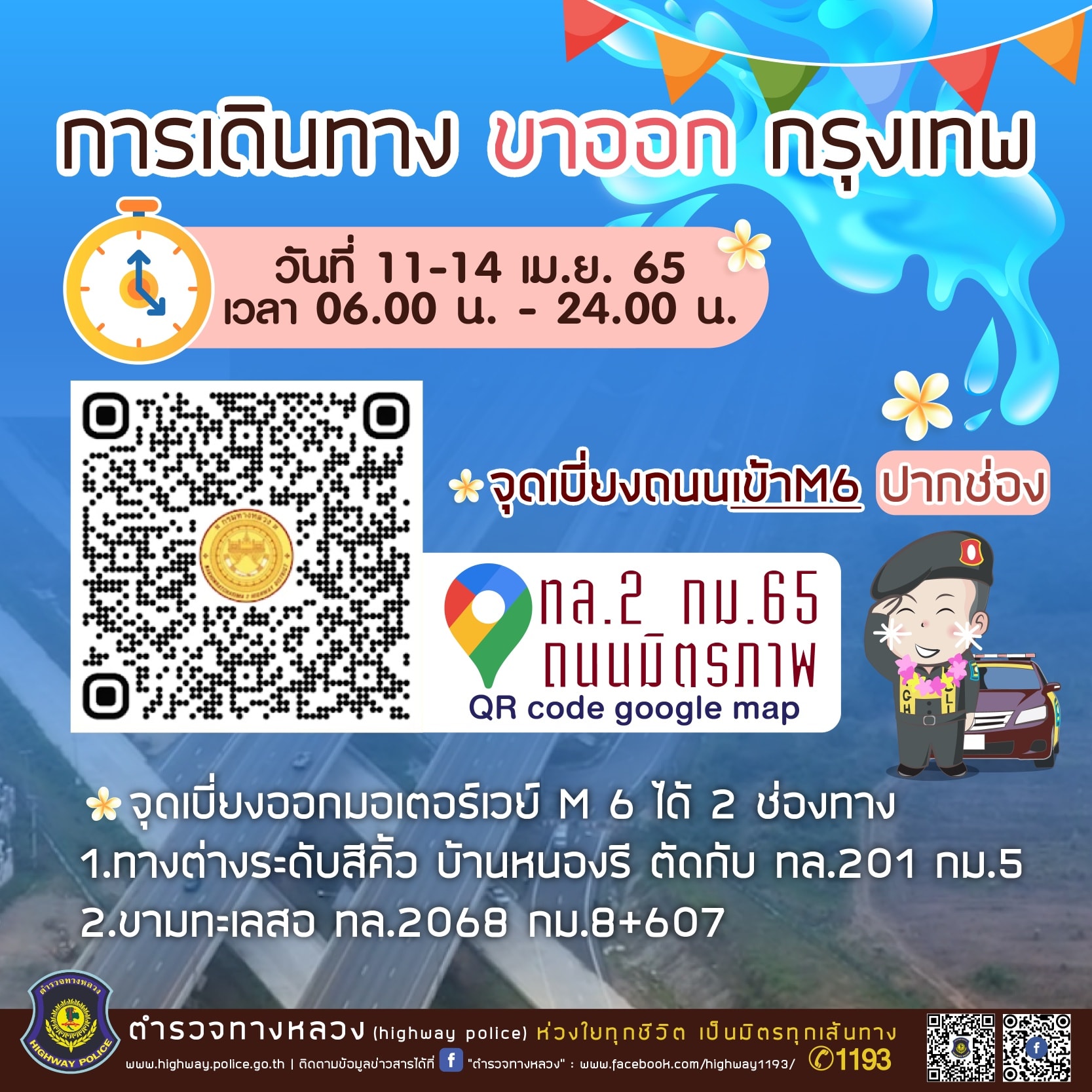 สภาพการจราจร แจ้งเหตุด่วนเหตุร้าย หรือขอความช่วยเหลือ สามารถแจ้งได้ที่ สายด่วนกรมทางหลวง 1586 (โทรฟรี 24 ชั่วโมง)
