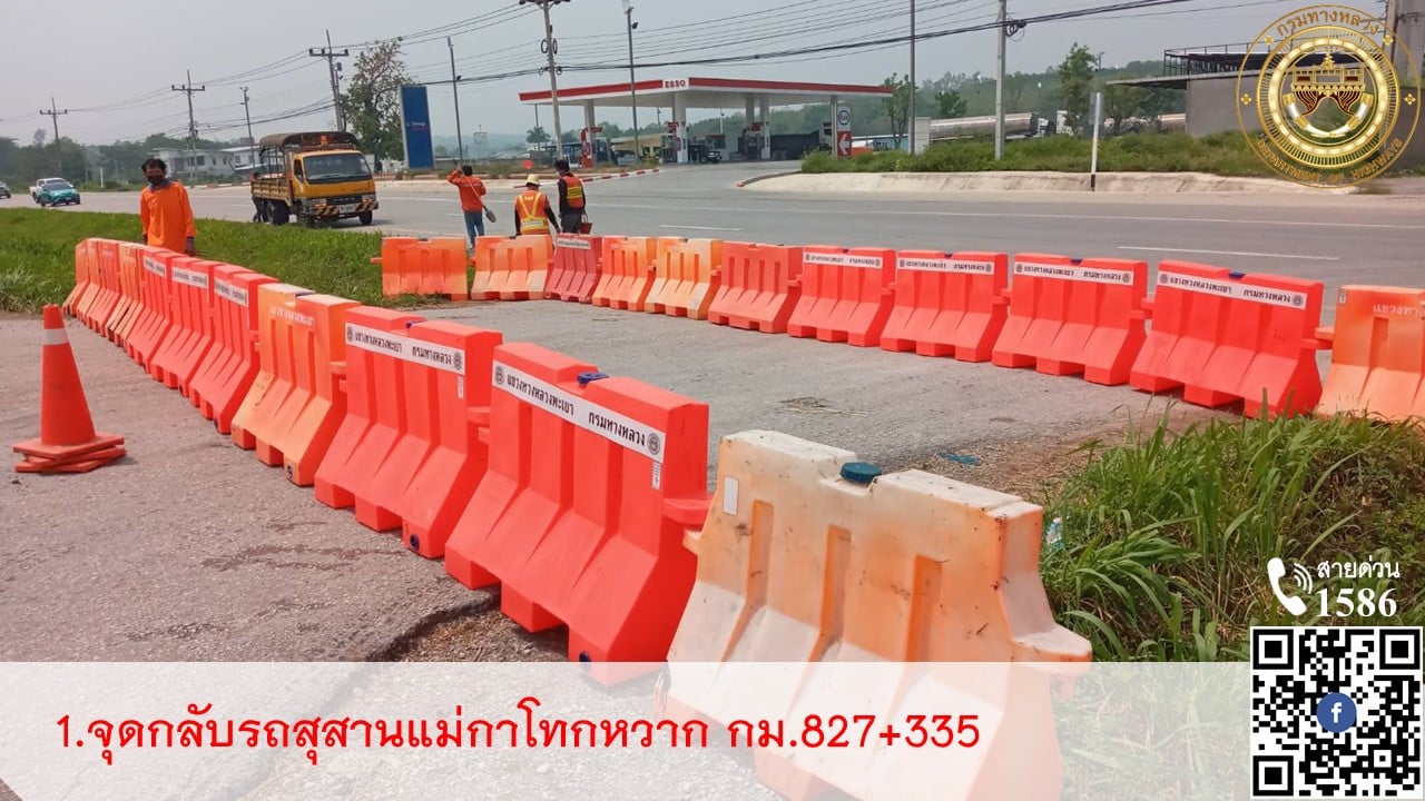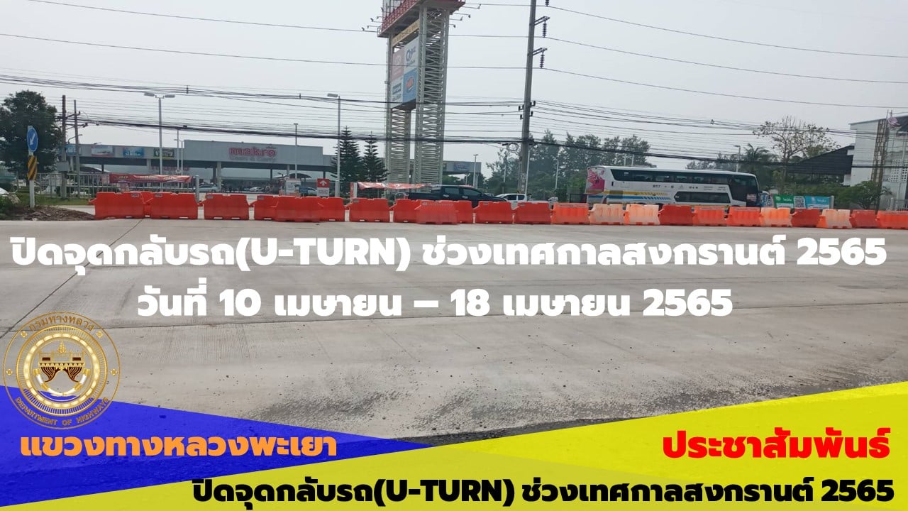 มอบหมายให้ งานอำนวยความปลอดภัย แขวงทางหลวงพะเยา ปิดจุดกลับรถ(U-TURN) ช่วงเทศกาลสงกรานต์ 2565 ตั้งแต่วันที่ 10 เมษายน 2565 - 18 เมษายน 2565