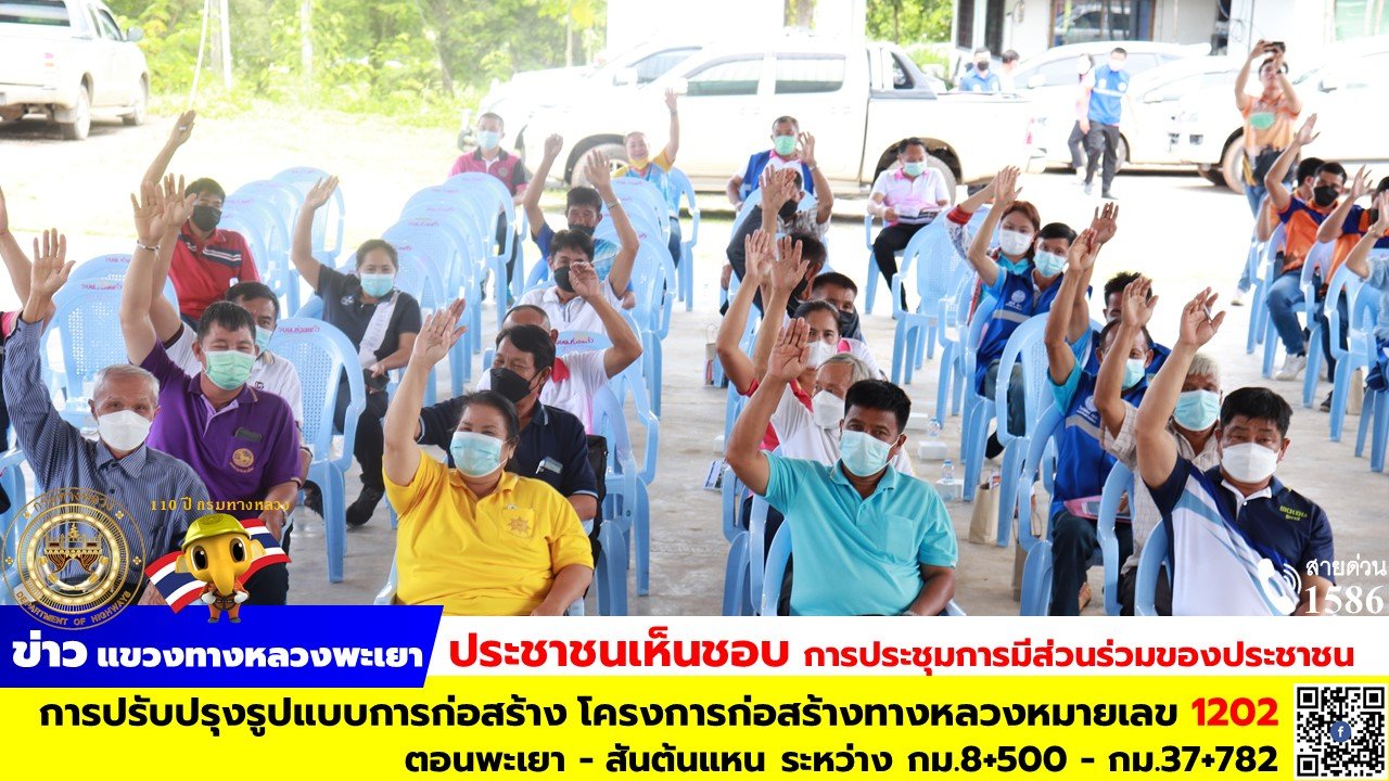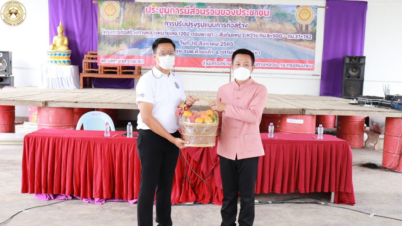 วันที่ 16 สิงหาคม 2565 แขวงทางหลวงพะเยา ร่วมกับ สำนักก่อสร้างที่ 1 กรมทางหลวง กระทรวงคมนาคม จัดการประชุมการมีส่วนร่วมของประชาชน การปรับปรุงรูปแบบการก่อสร้าง โครงการก่อสร้างทางหลวงหมายเลข 1202 ตอนพะเยา - สันต้นแหน ระหว่าง กม.8+500 - กม.37+782 เพื่อรับฟังความคิดเห็น ของประชาชนที่มีผลกระทบต่อการดำเนินการ ก่อสร้าง ตลอดจนผู้ใช้รถใช้ถนน ณ หอประชุม อบต.ห้วยแก้ว อ.ภูกามยาว จ.พะเยา