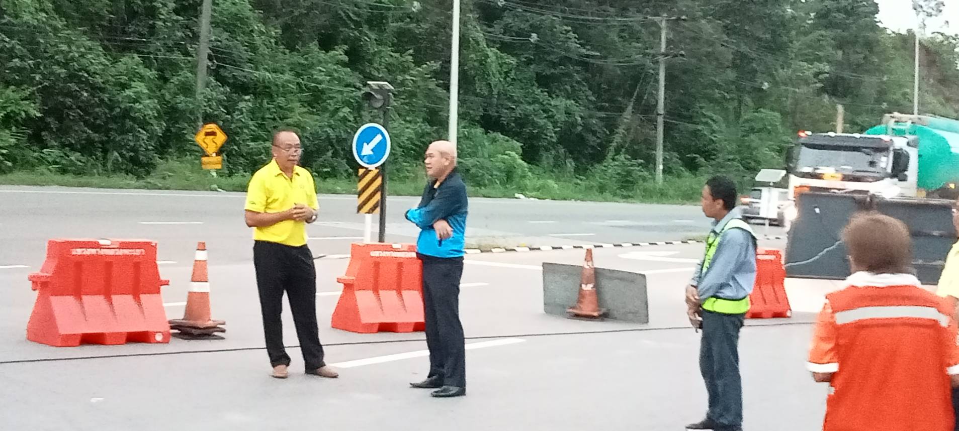 นายพูนศักดิ์ เมาะราษี ผู้อำนวยการแขวงทางหลวงพะเยา ให้การต้อนรับ นายรัฐพล นราดิศร ผู้ว่าราชการจังหวัดพะเยา ได้ลงพื้นที่ติดตามความคืบหน้า เหตุคันทางทรุดตัว ผิวทางและโครงสร้างทางชำรุดเสียหายจำนวน 1 ช่อง (ทางด้านซ้ายขาขึ้น) ทางหลวงหมายเลข 1 ตอนแม่กา - แยกประตูชัย ช่วงกม.815+800 – กม.815+900