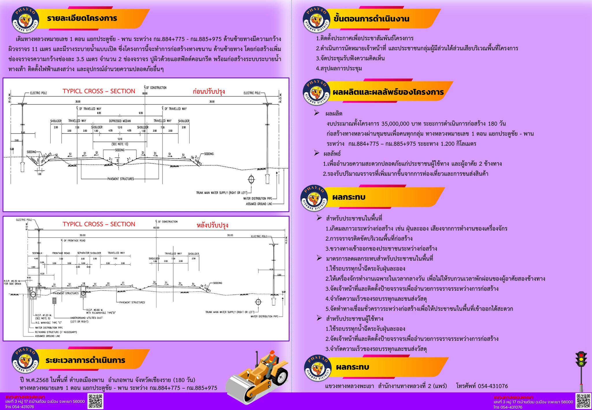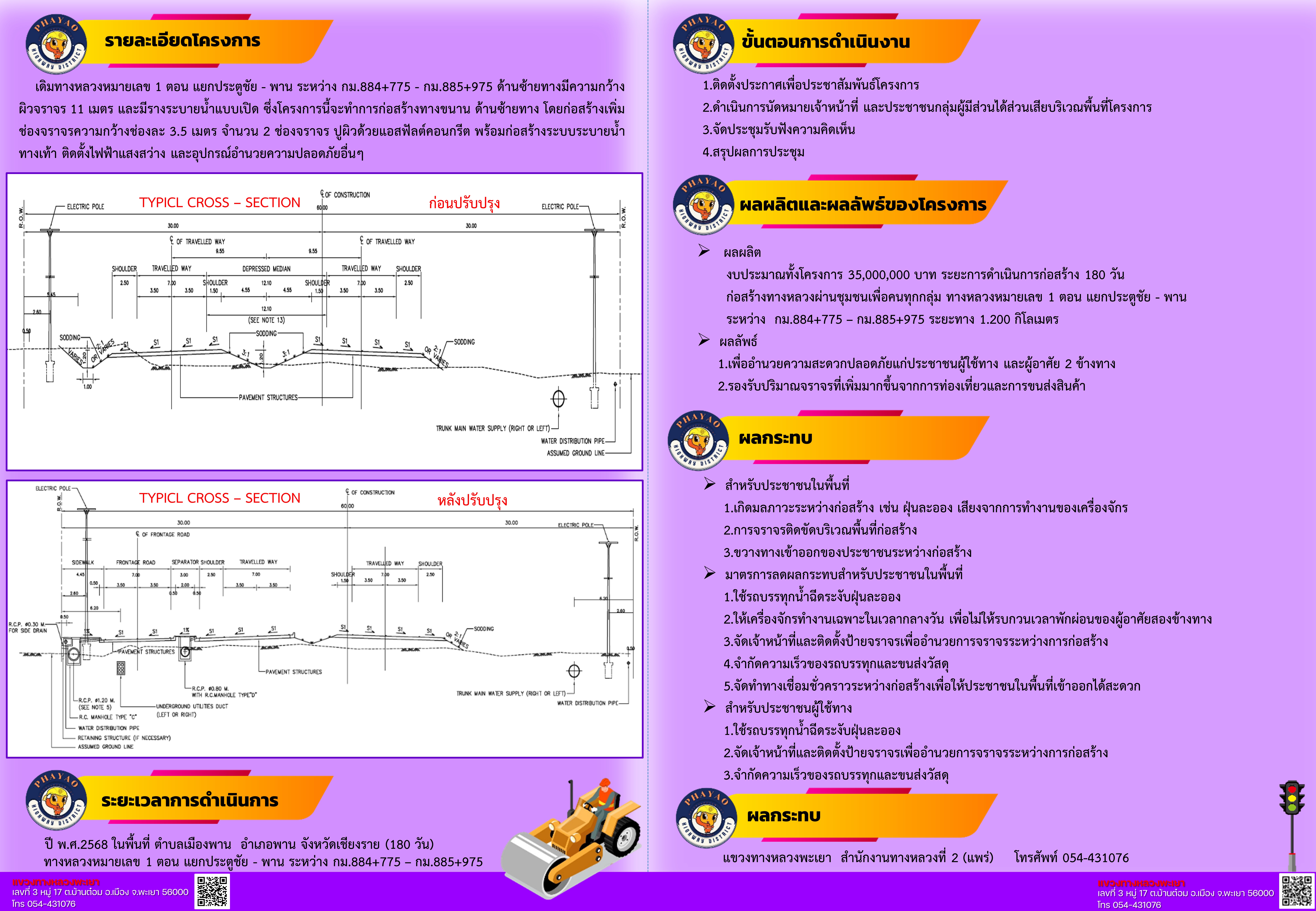 | แผ่นพับโครงการก่อสร้างโครงข่ายทางหลวงแผ่นดินกิจกรรมก่อสร้างทางหลวงผ่านชุมชนเพื่อคนทุกกลุ่มทางหลวงหมายเลข 1 ตอน แยกประตูชัย - พาน ระหว่าง กม.884+775 - กม.885+975แผ่นที่2 | 75 | ดาวน์โหลด |