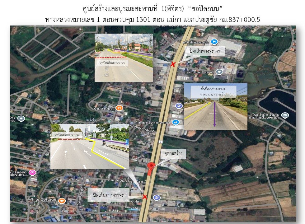 จึงขออภัยในความไม่สะดวก โปรดใช้เส้นทางด้วยความระมัดระวัง และขอความร่วมมือในการปฏิบัติตามป้ายแนะนำ ป้ายเตือน ในพื้นที่ก่อสร้างเพื่อความปลอดภัยของผู้ใช้ทางดังกล่าว สอบถามข้อมูลเพิ่มเติมได้ที่ : นายพรพิพัฒน์ โสธนะ ตำแหน่งวิศวกรโยธาปฏิบัติการ เบอร์โทรศัพท์ 093-135-5335
