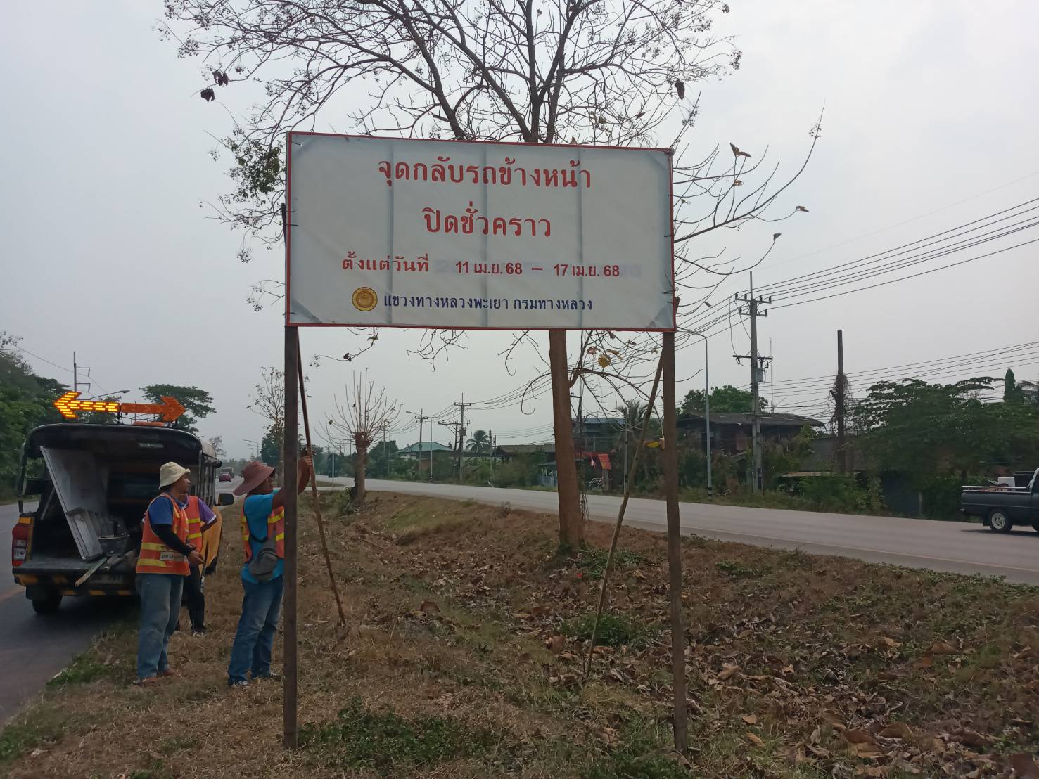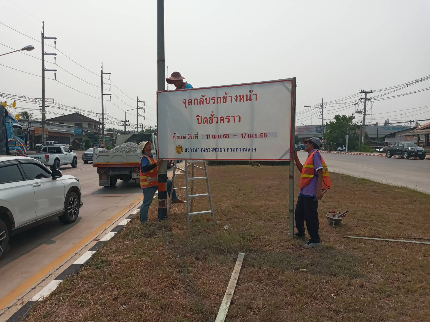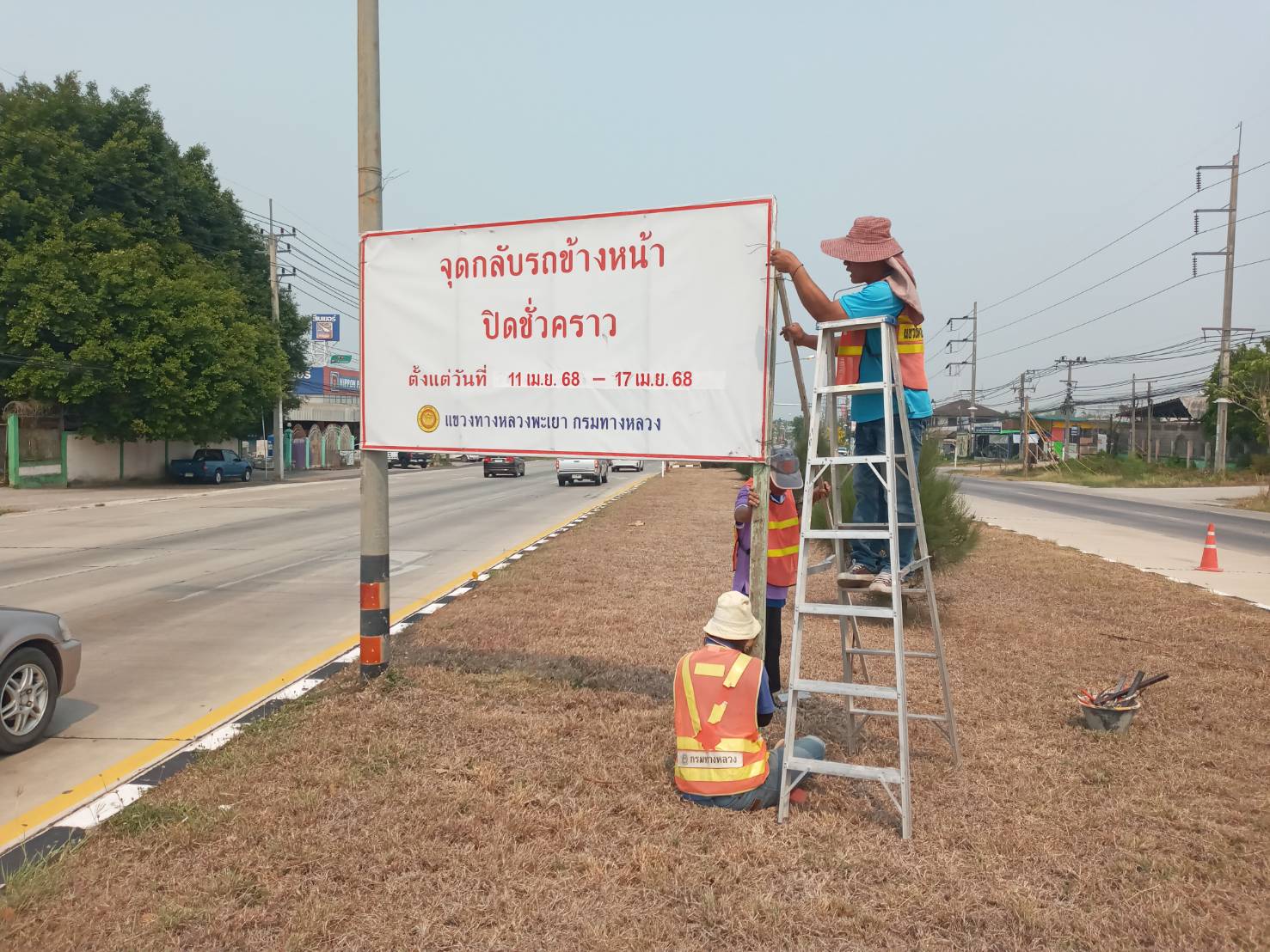 นายพูนศักดิ์ เมาะราษี ผู้อำนวยการแขวงทางหลวงพะเยา มอบหมายให้ งานอำนวยความปลอดภัย แขวงทางหลวงพะเยา ติดตั้งป้ายประชาสัมพันธ์ ปิดจุดกลับรถ(U-TURN) ช่วงเทศกาลสงกรานต์ ประจำปี 2568 ตั้งแต่วันที่ 11 เมษายน 2568 - 17 เมษายน 2568 เพื่อความปลอดภัย และลดจุดเสี่ยงการเกิดอุบัติเหตุในช่วงเทศกาลสงกรานต์