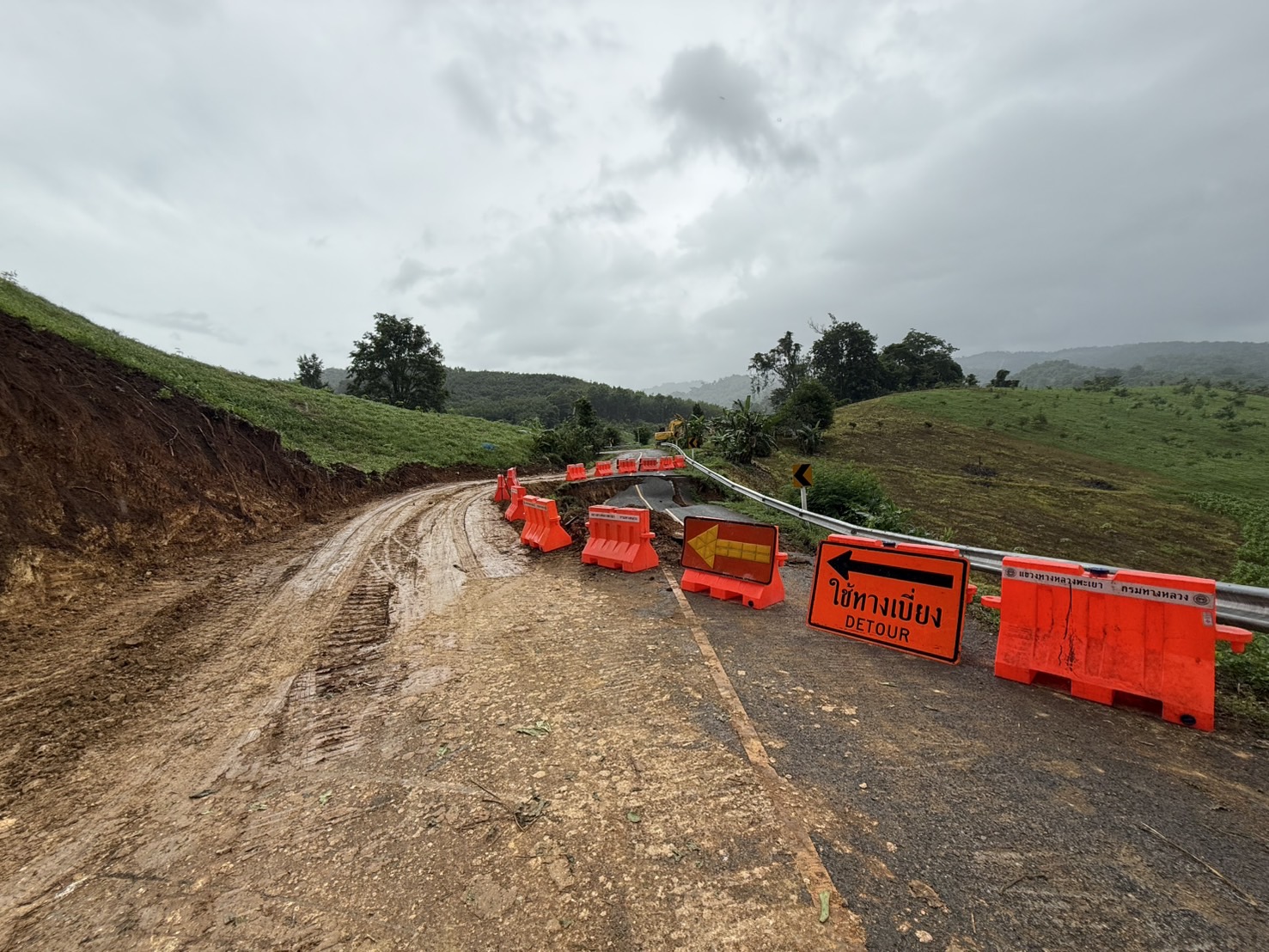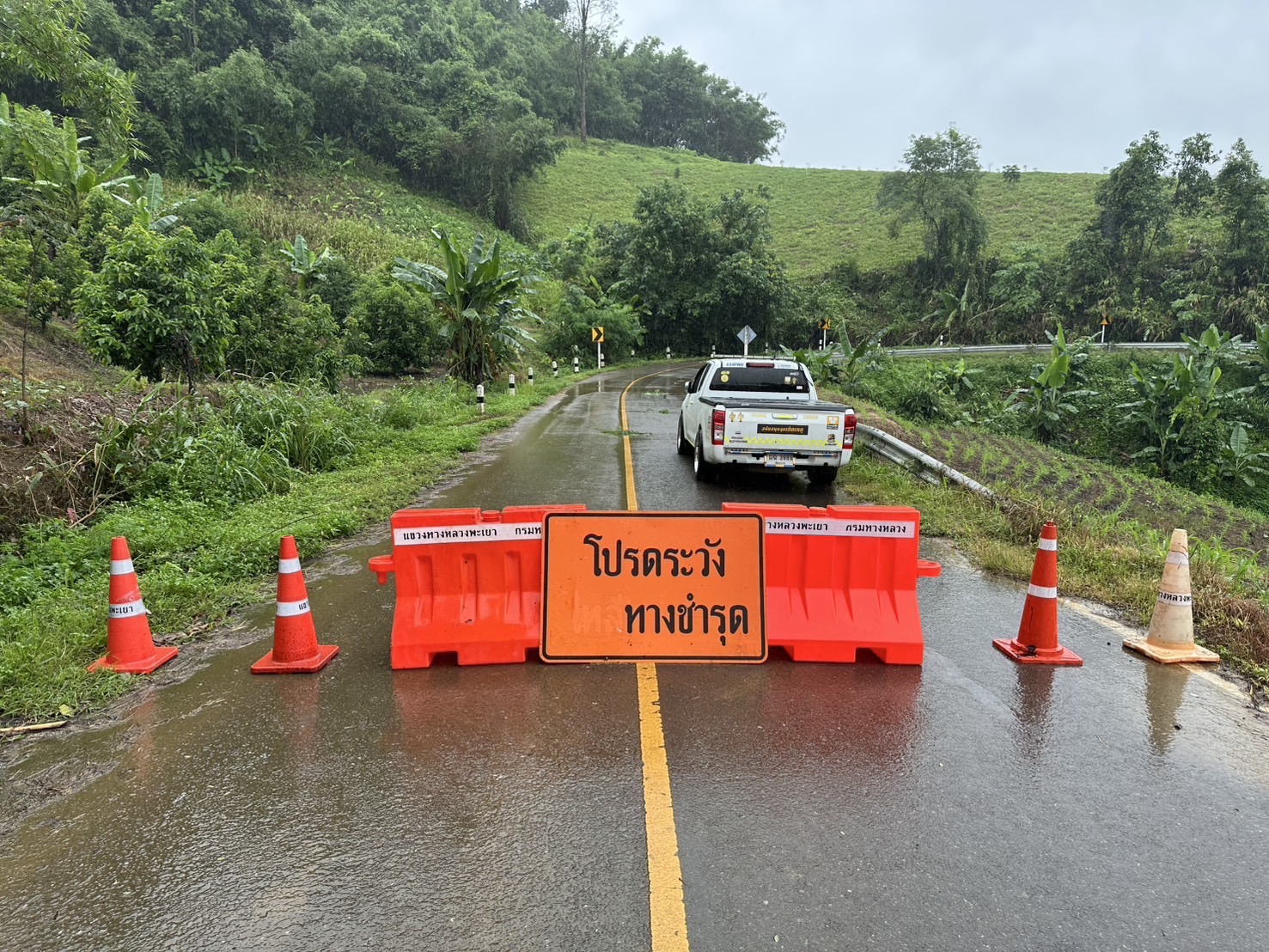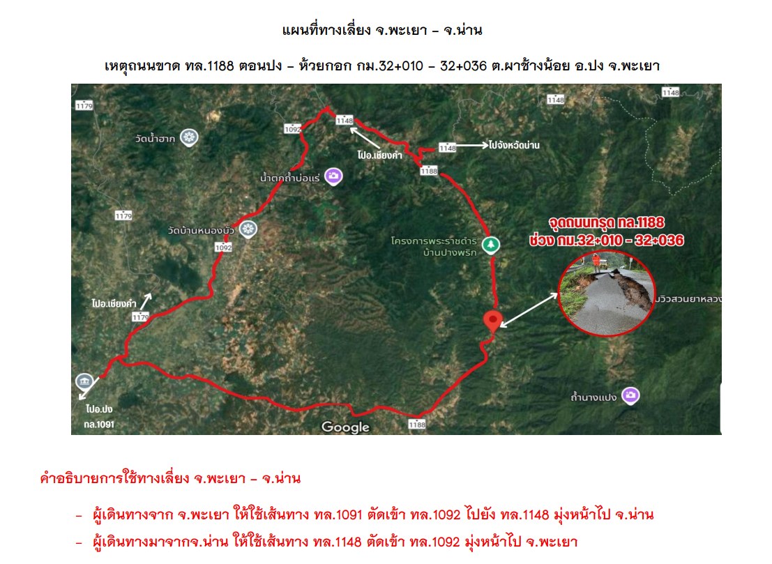 เกิดเหตุถนนขาด ทางหลวงหมายเลข 1188 ตอนปง - ห้วยกอก ช่วงกม.32+000 - กม.32+040 พื้นที่ ต.ผาช้างน้อย อ.ปง จ.พะเยา