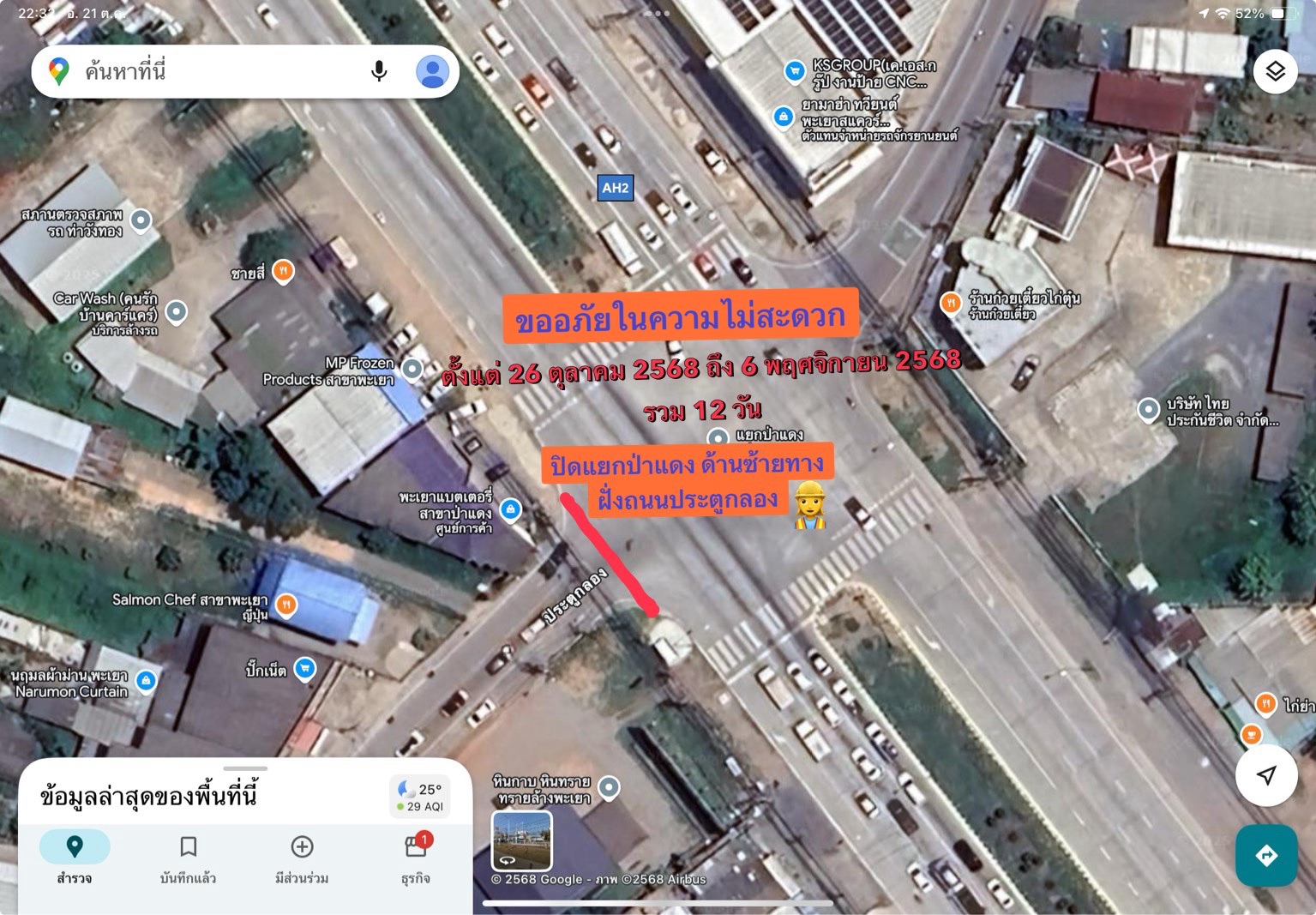 แจ้งปิดทางแยกป่าแดง ตอน แยกประตูชัย - พาน กม.840+350 (ด้านซ้ายทาง) ฝั่งถนนประตูกลอง ตั้งแต่วันที่ 26 ตุลาคม 2568 - 6 พฤศจิกายน 2568 (รวม 12 วัน)