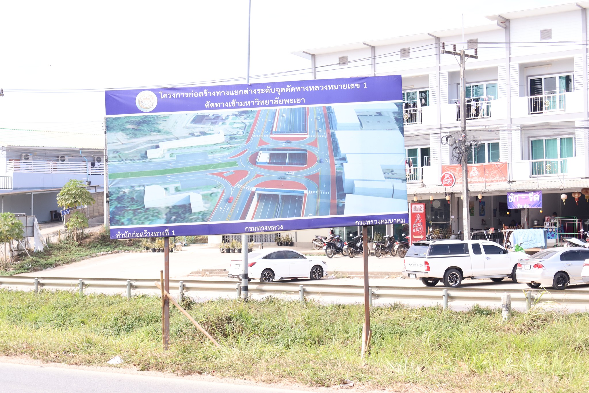 โครงการก่อสร้างทางแยกต่างระดับ จุดตัดทางหลวงหมายเลข 1 ตัดทางเข้ามหาวิทยาลัยพะเยา ตอนแม่กา - แยกประตูชัย ระหว่าง กม.821+450 - กม.823+375 (ระยะเวลาทำการ 1,080 วัน)